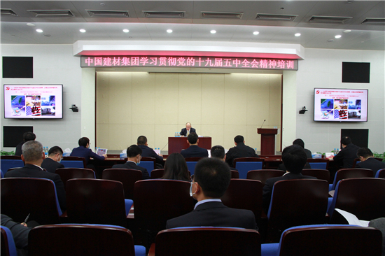 为深入学习贯彻党的十九届五中全会精神,进一步推动全会精神在集团直达基层、深入人心, 12月5日至6日,中国建材集团党委举办学习贯彻党的十九届五中全会精神培训会。集团党委书记、董事长周育先主持会议并作总结讲话,集团党委常委参加培训。此次培训,邀请中央党校(国家行政学院)经济学教研部主任韩保江、清华大学中国发展规划研究院执行副院长董煜、中国建筑材料联合会党委书记阎晓峰等3位专家作了专题讲座。