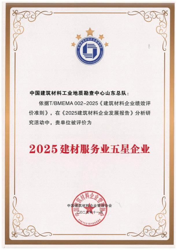 近日,山东总队凭借突出的综合服务实力与强劲的发展潜力,荣获“2025 建材服务业五星企业”“2025成长性五星企业”两项荣誉。这不仅是行业对总队服务品质与发展前景的肯定,更是对总队践行高质量发展理念的高度认可。