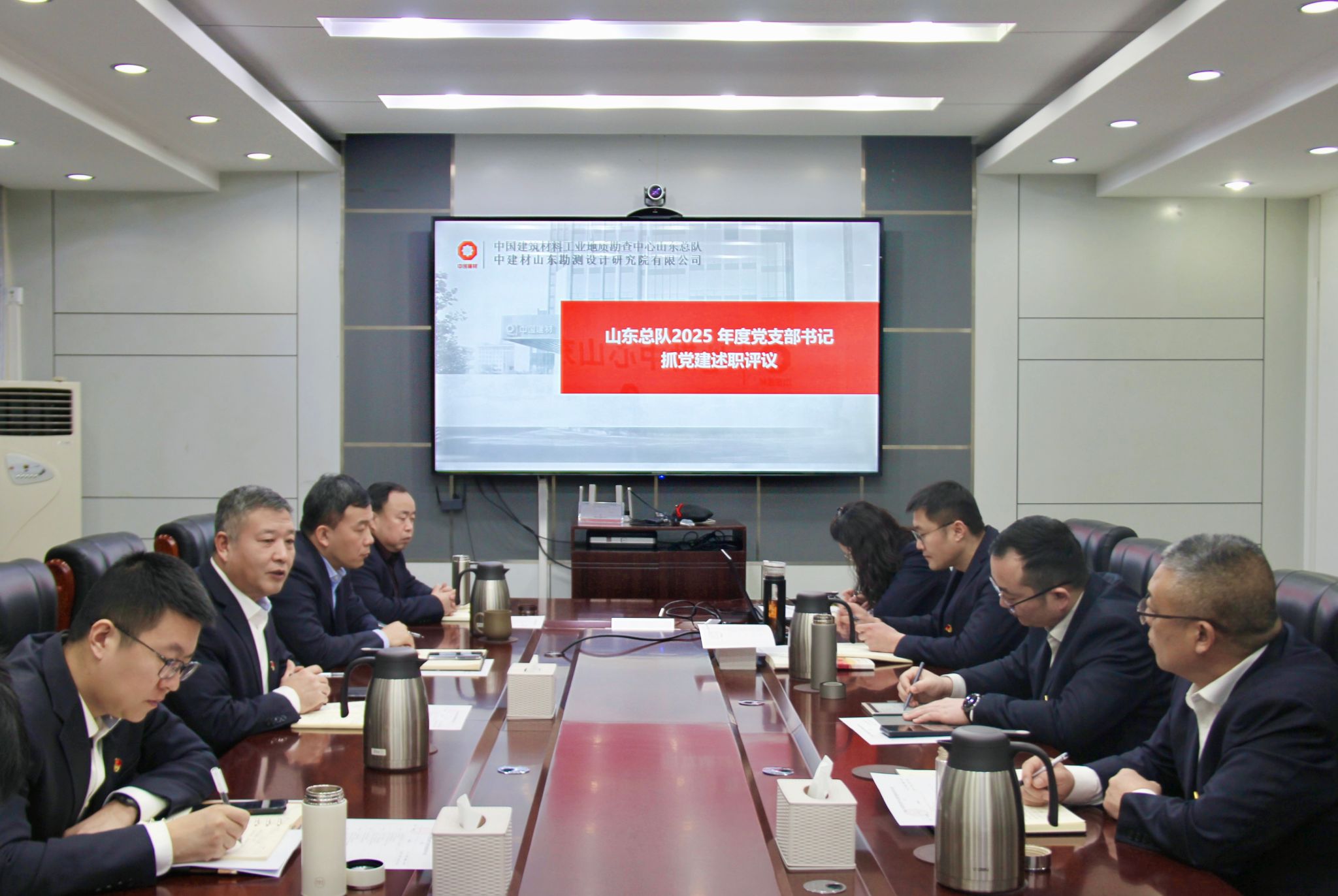 党委书记、总队长刘海泉对各支部2025年度党建工作进行了逐一点评。他指出,各党支部坚持以政治建设为统领,持续深化理论武装,党员先锋模范作用得到了进一步发挥,为总队发展提供了有力保障。刘海泉对下一步工作提出四点要求:一是持续深化党支部标准化规范化建设,提升党建工作的专业性、严肃性,筑牢总队党建工作根基;二是深化理论学习成效,抓实学习成果检验,推动理论学习入心入脑、见行见效;三是推动党建与业务深度融合,找准党建工作与生产经营、管理提升的结合点、发力点,实现党建与业务同频共振、互促共进;四是激发党支部内生动力,以重点项目攻坚、急难险重任务为抓手,发挥党员先锋模范作用和党支部战斗堡垒作用,为总队高质量发展提供坚实保障。