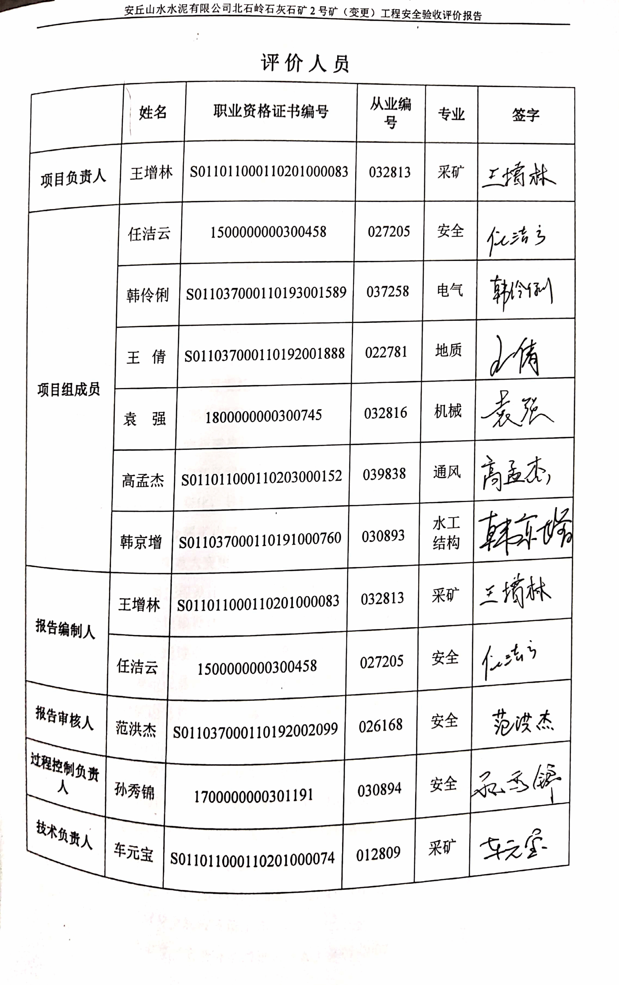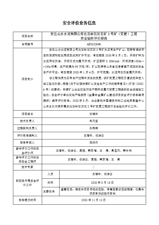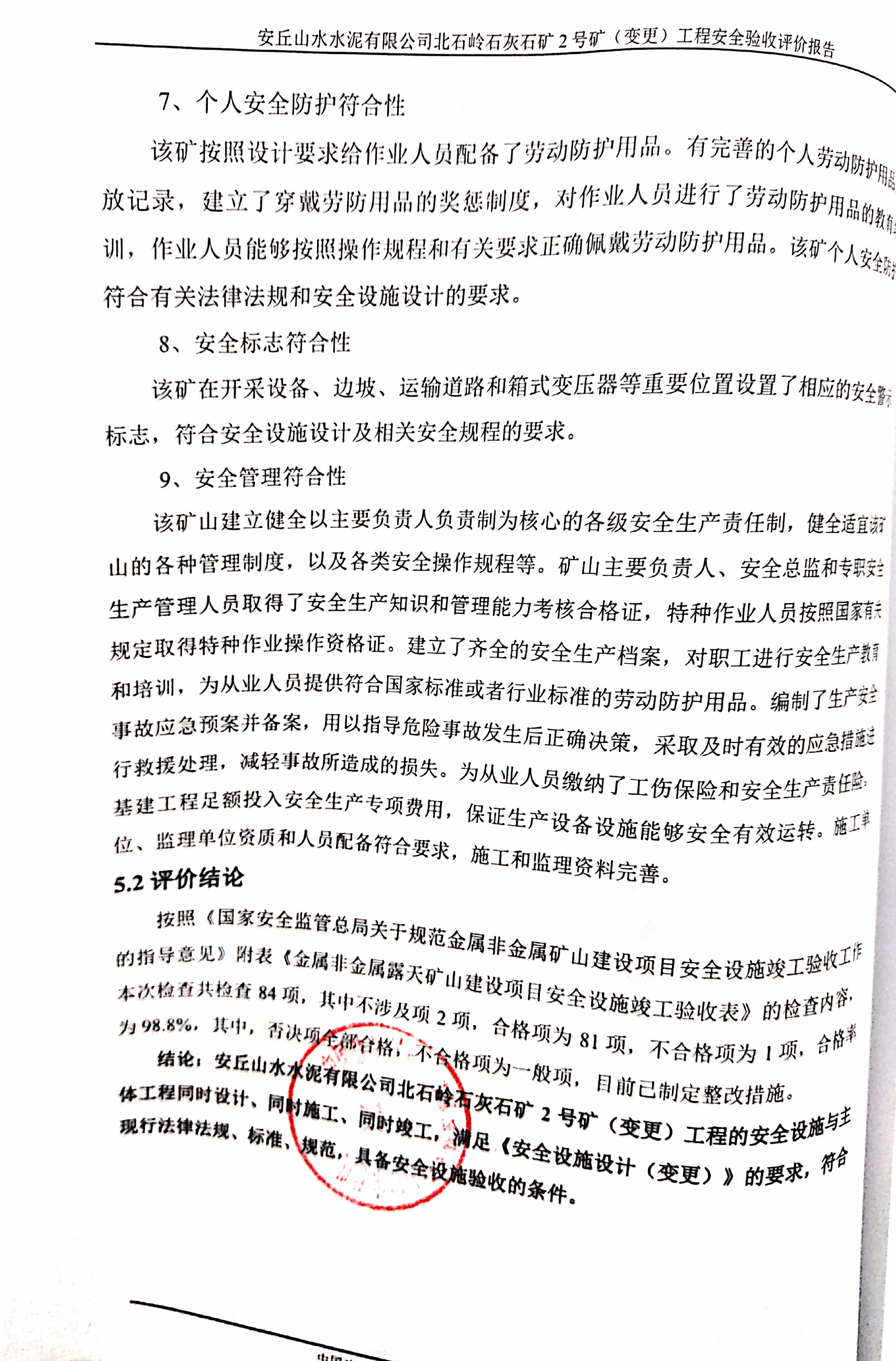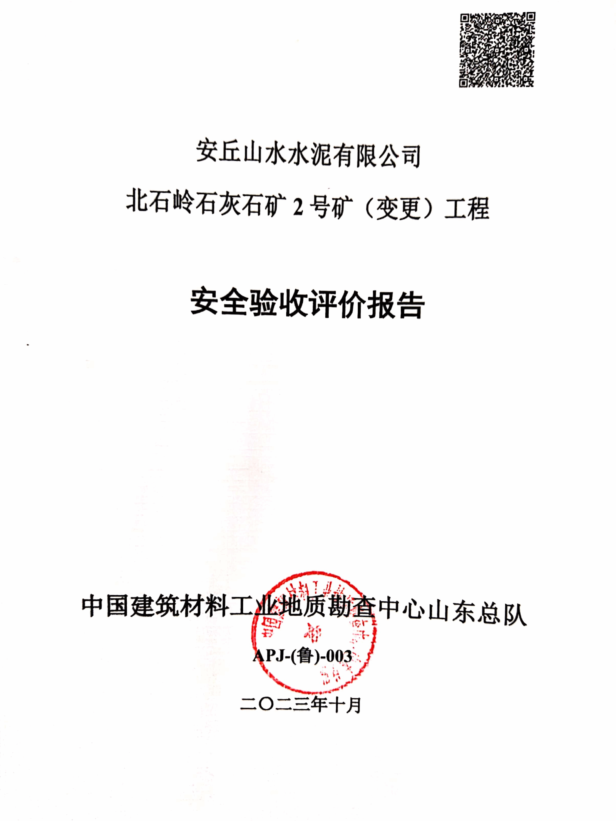 上一条:安丘山水水泥有限公司北石岭石灰石矿1号矿(变更)工程安全验收评价报告 下一条:淄博山水水泥有限公司水泥用石灰岩矿安全现状评价报告