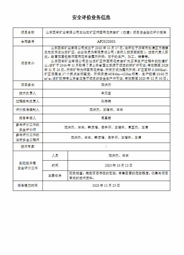 上一条:济南市莱芜金牛矿业开发公司金牛铁矿35万吨/年改扩建项目安全预评价报告 下一条:山东沂蒙交投资源开发有限公司山东省费县潘家庄北矿区建筑石料用灰岩矿安全预评价报告