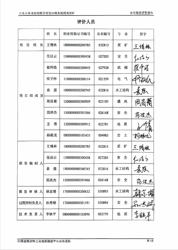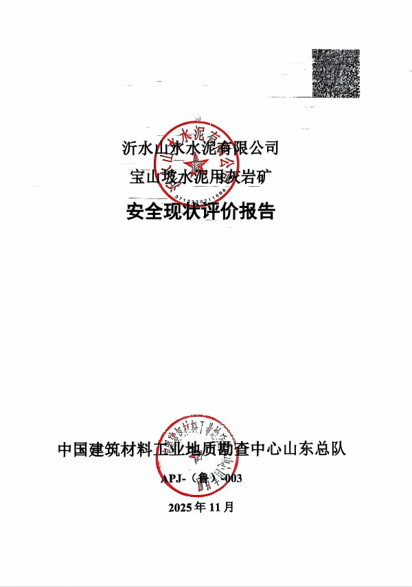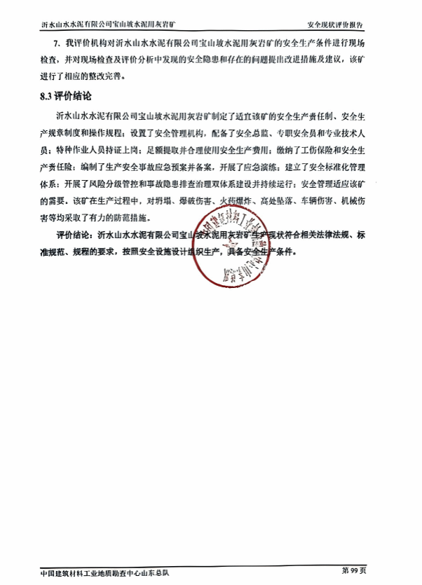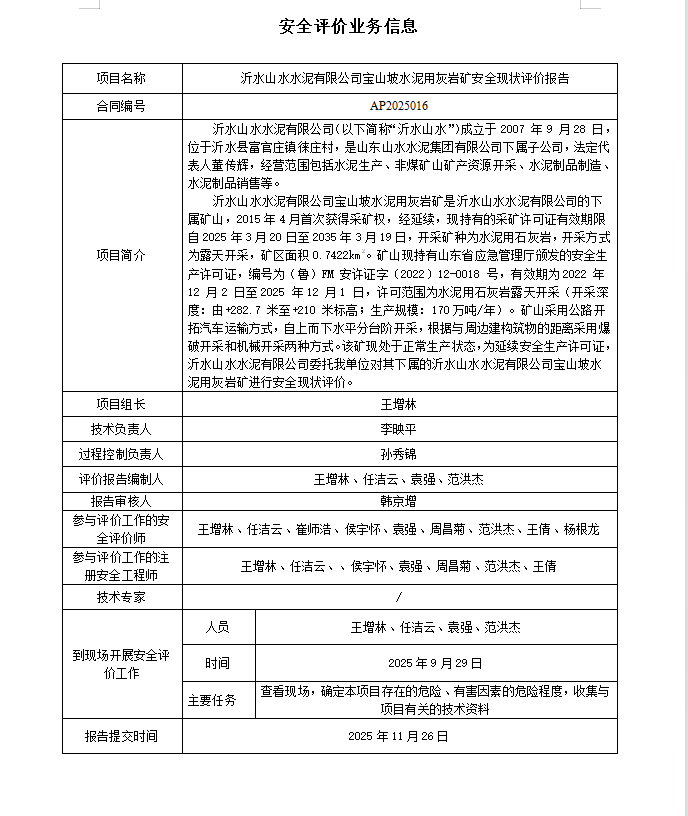 上一条:青州中联水泥有限公司水泥用灰岩1号矿区安全现状评价报告 下一条:临朐山水水泥有限公司土山矿区水泥用石灰岩矿改扩建项目安全预评价报告