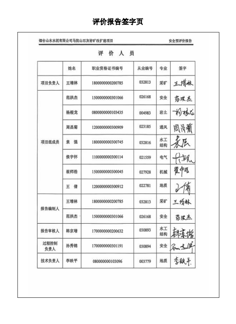报告签名页: