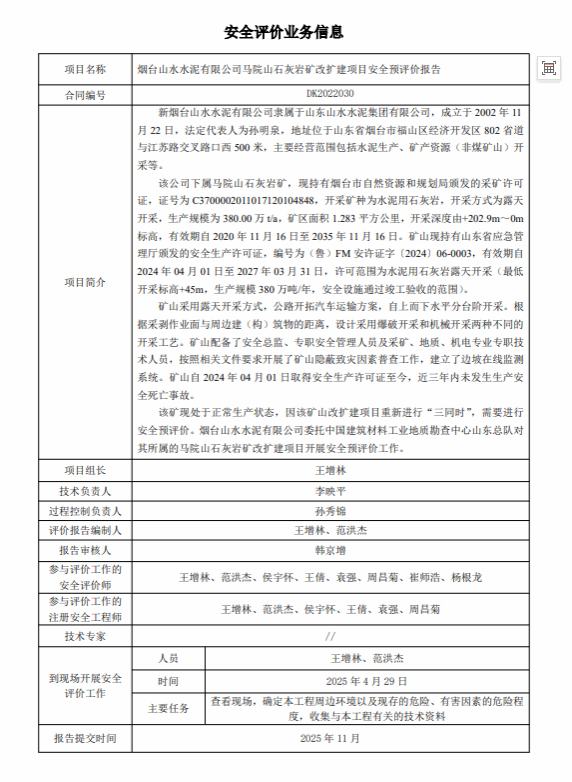 安全评价业务信息: