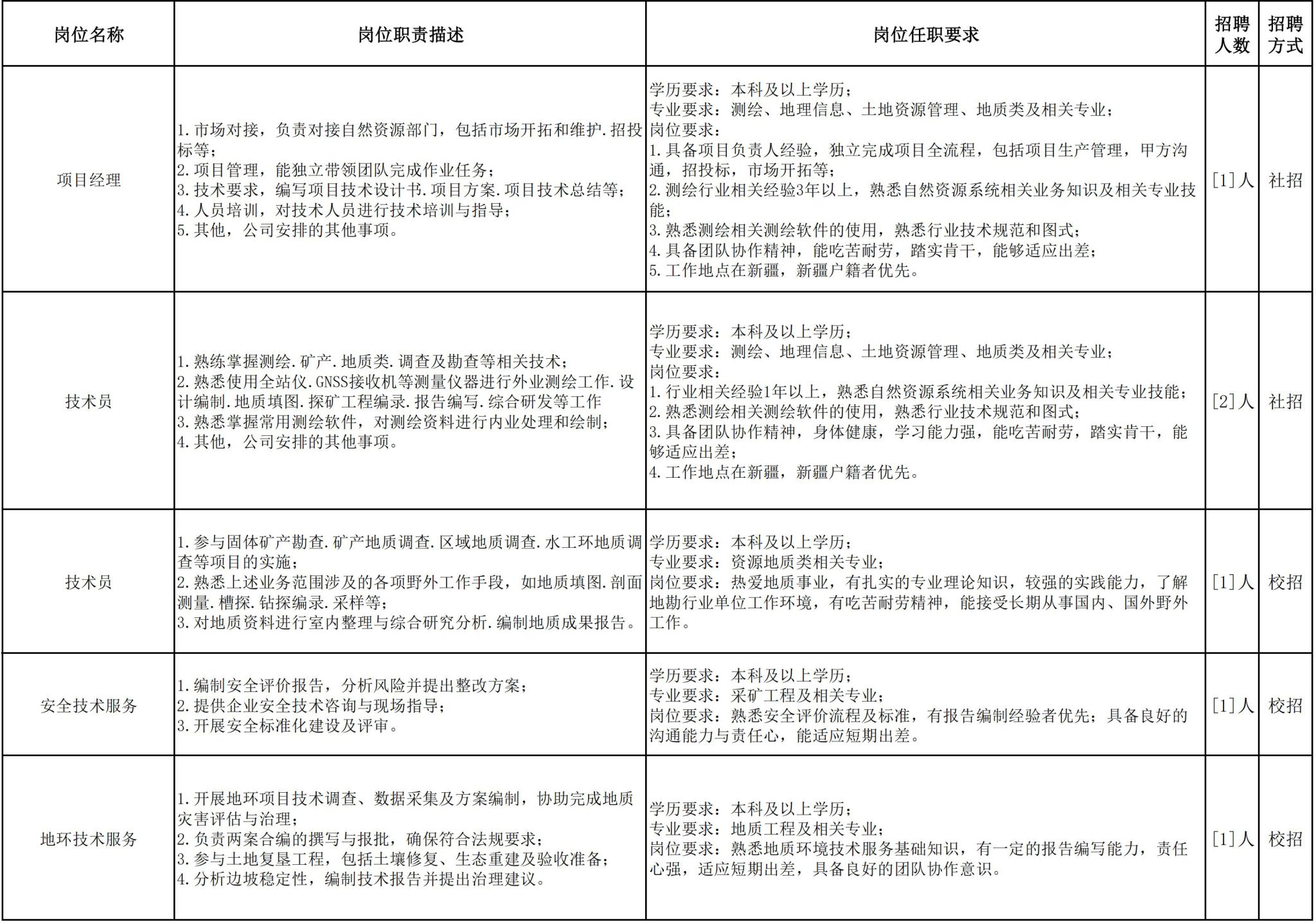 主要业务板块有地质勘查,岩土工程勘察、设计、施工,测绘地理信息,地质灾害防治,金属、非金属矿安全评价及企业安全生产标准化评审,职业病危害评价及因素检测,土地规划,绿色矿山建设等。